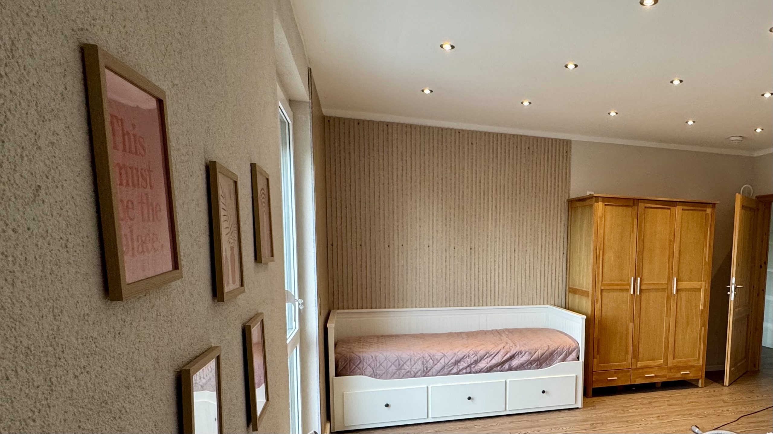 Zwei Einzelbetten (optional 3), ideal für Kinder oder Freunde. Helle und freundliche Atmosphäre.